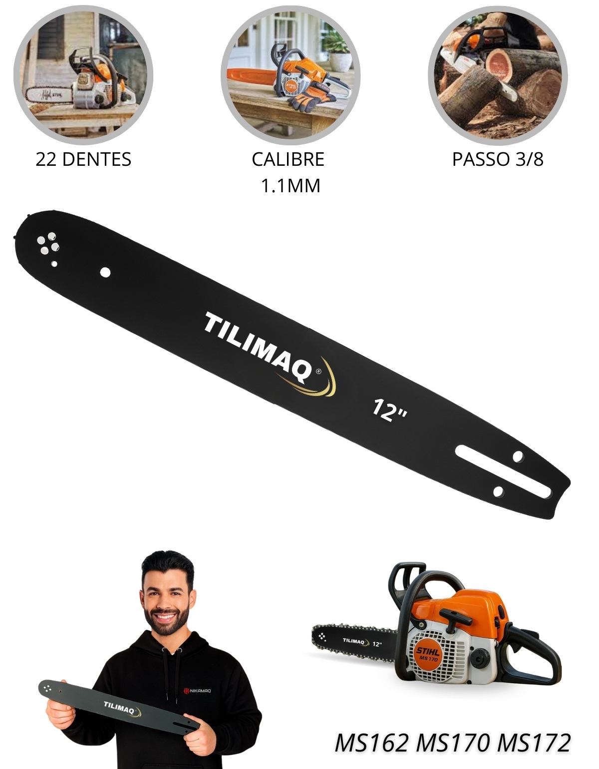 - MODELO DO SABRE PONTA ROLANTE DE 12 POLEGADAS (30cm) PARA CORRENTE 22 DENTES 3/8'